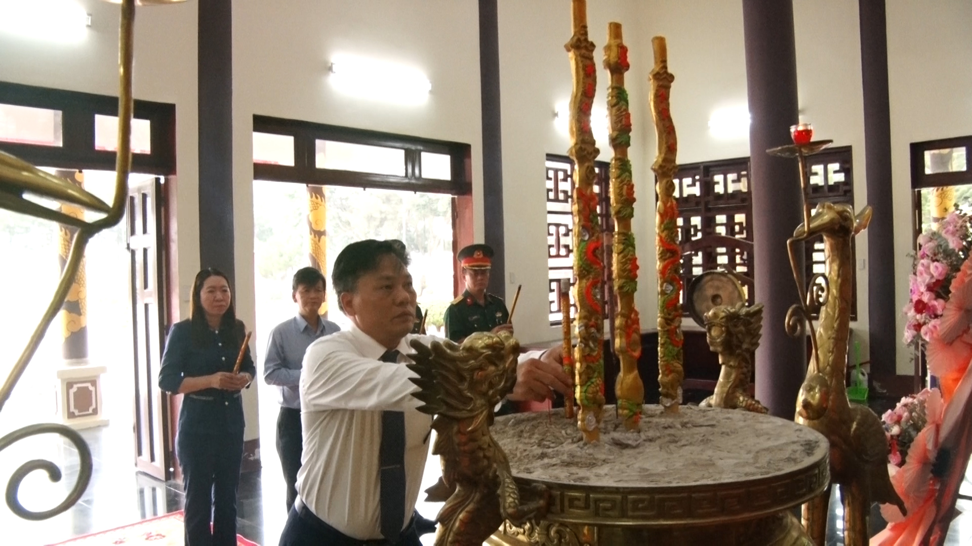 Các đồng chí lãnh đạo xã dâng hương viếng đền thờ sĩ.