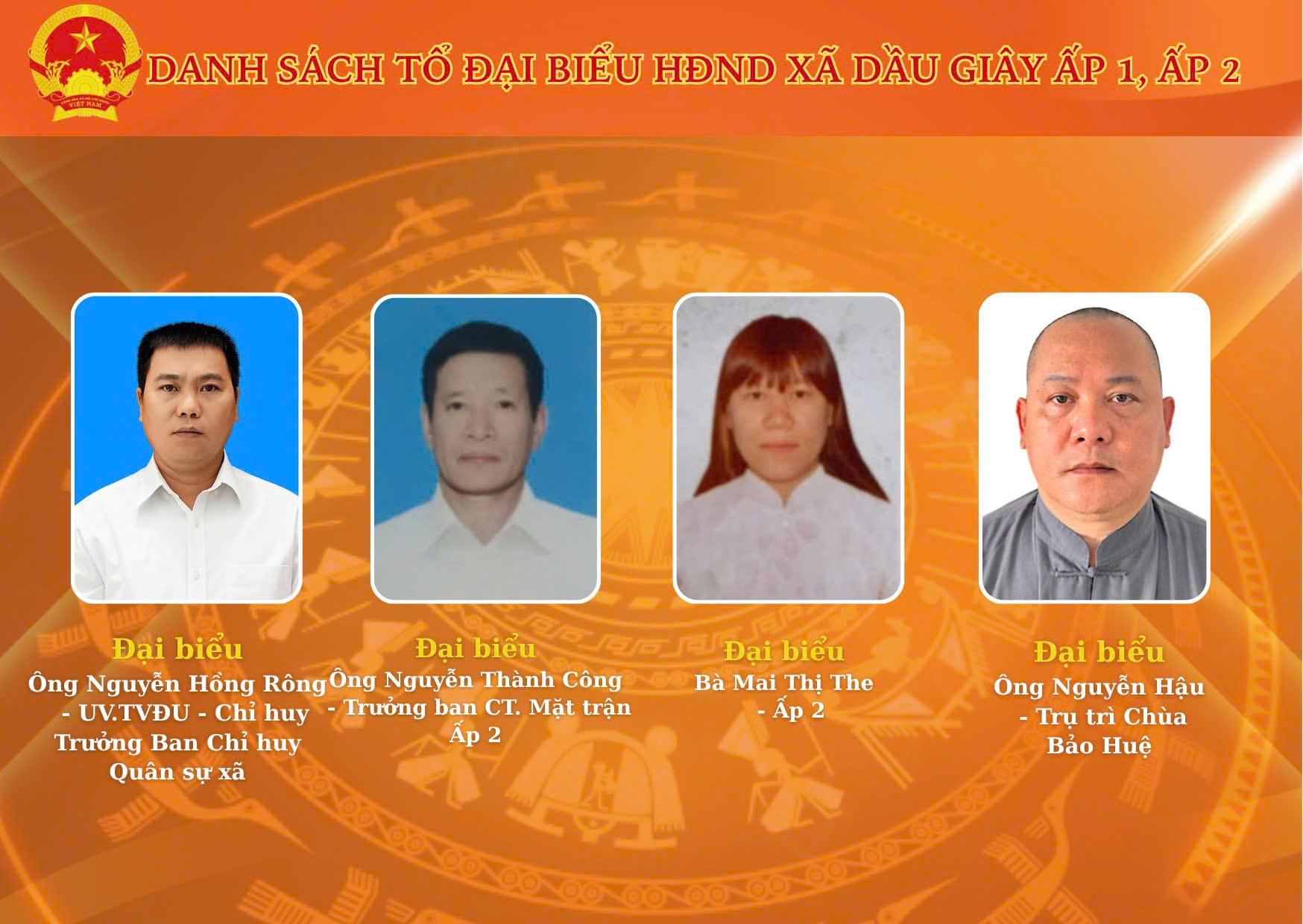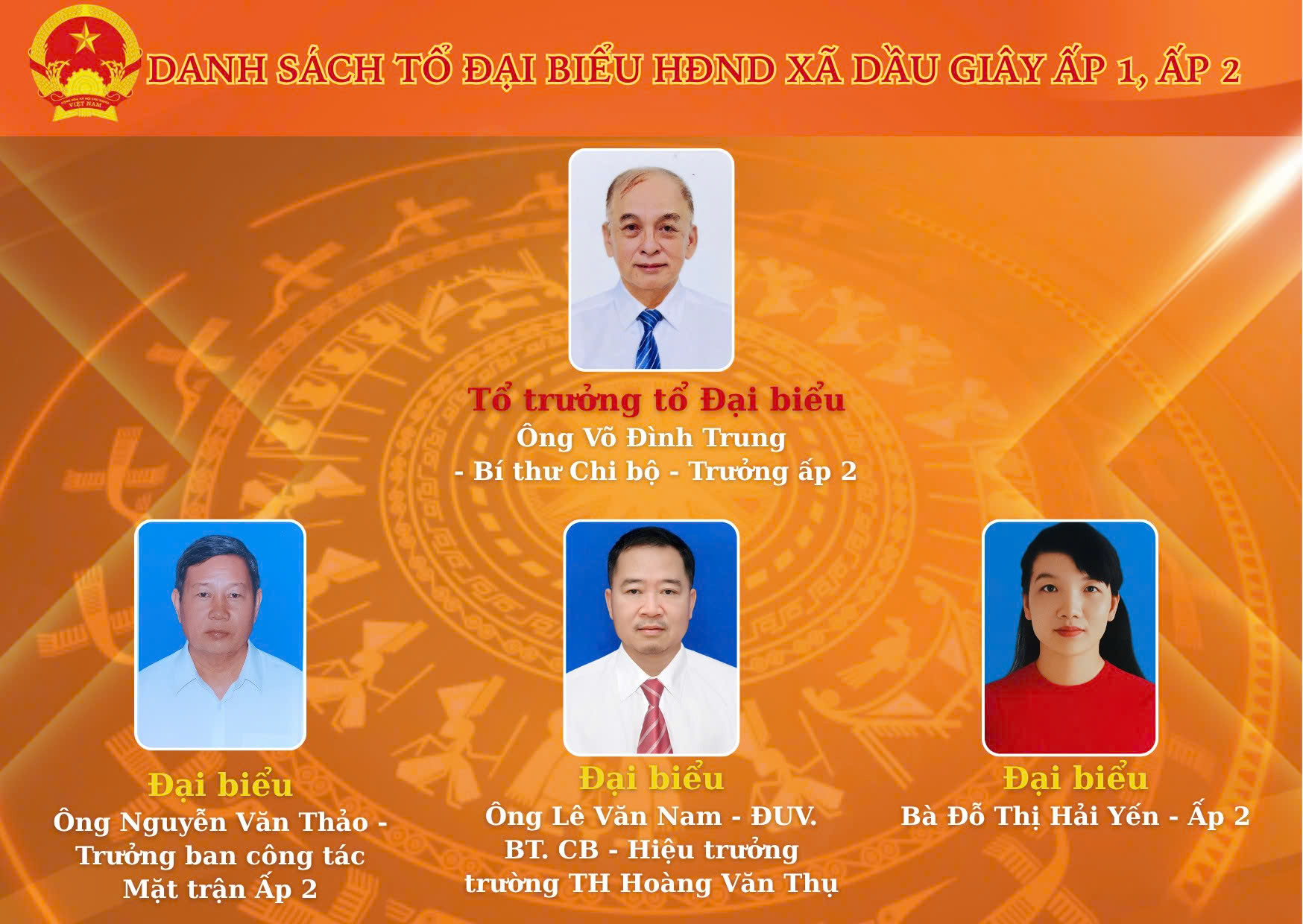 UBND xã Dầu Giây công khai danh sách Tổ đại biểu HĐND xã phụ trách ấp 1 và ấp 2, nhiệm kỳ 2021–2026. Các đại biểu là những người tiêu biểu, đại diện cho ý chí và nguyện vọng của Nhân dân, có trách nhiệm lắng nghe, phản ánh tâm tư, kiến nghị của cử tri đến HĐND và chính quyền địa phương, góp phần xây dựng chính quyền cơ sở vững mạnh, gần dân, vì dân.